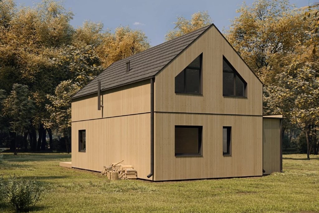 Prime House 110 to dom w stylu nowoczesnej stodoły zaprojektowany z myślą o 4 osobowej rodzinie. W skład pomieszczeń wchodzi duży salon z aneksem kuchennym o powierzchni 32 m², 4 ustawne pokoje, 2 przestronne łazienki, pomieszczenie techniczne oraz wiatrołap.