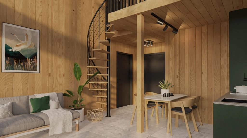 Rest House 45 to obiekt spełniający wszystkie potrzeby domu rekreacyjnego, lub przeznaczonego pod wynajem krótkoterminowy. Dom posiada dwuosobową sypialnię, łazienkę, salon z aneksem kuchennym oraz antresolę, gdzie jest dodatkowa przestrzeń do spania dla dwójki osób. Nasz całoroczny dom o powierzchni podstawy 35m2 z antresolą jest w stanie komfortowo zapewnić nocleg dla 4 osób.