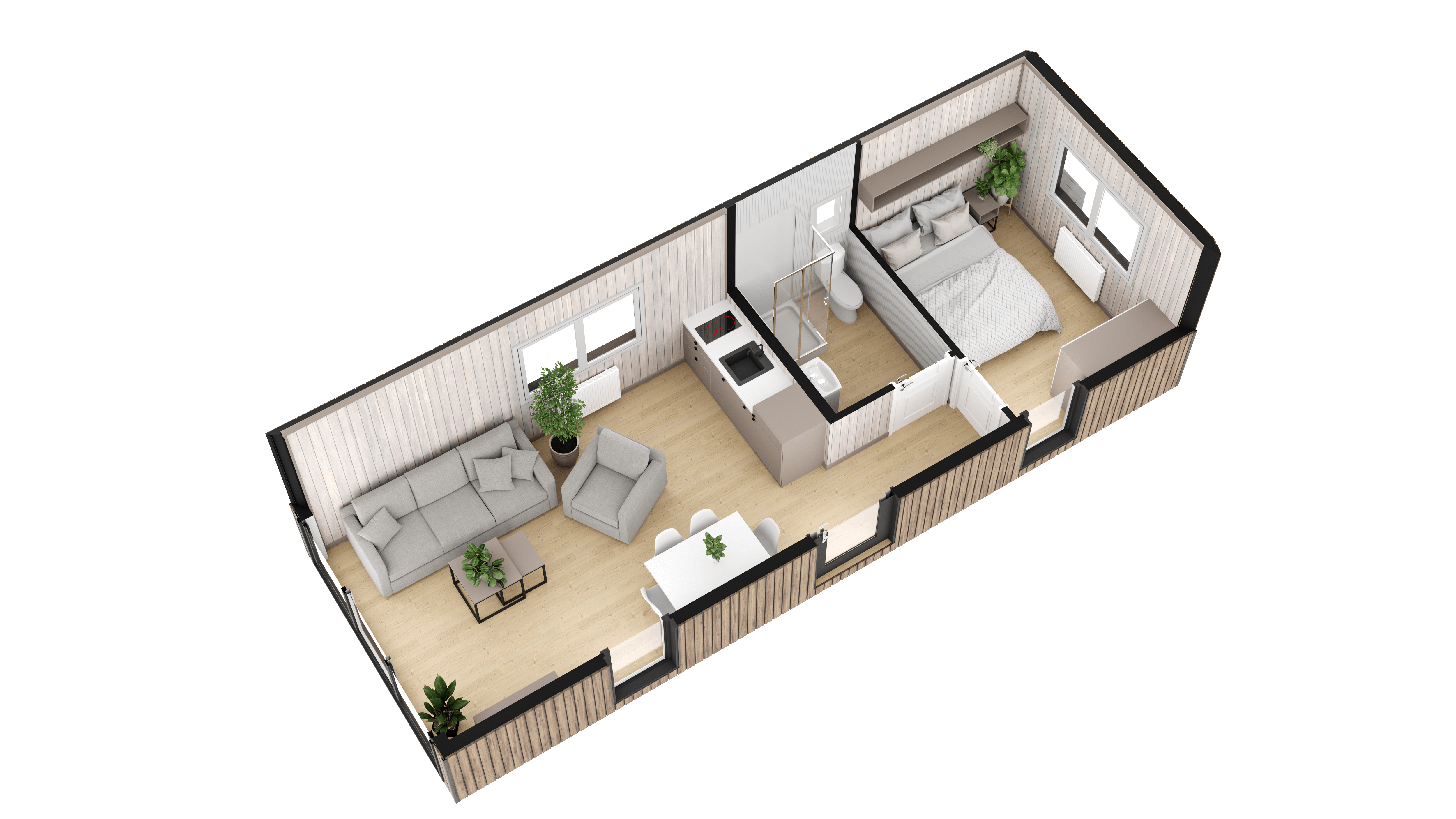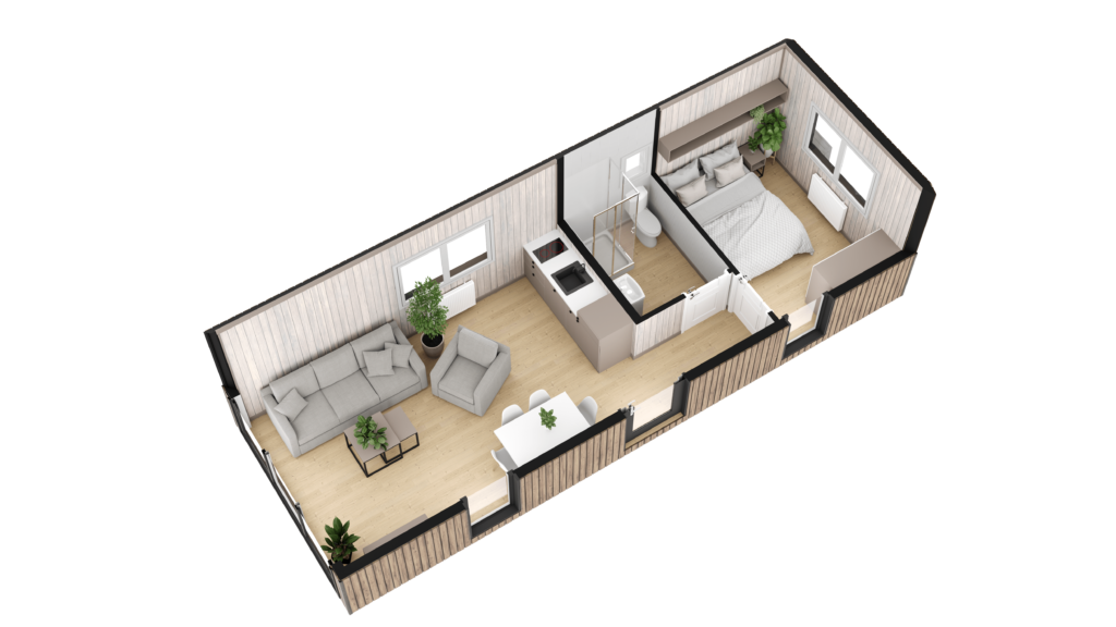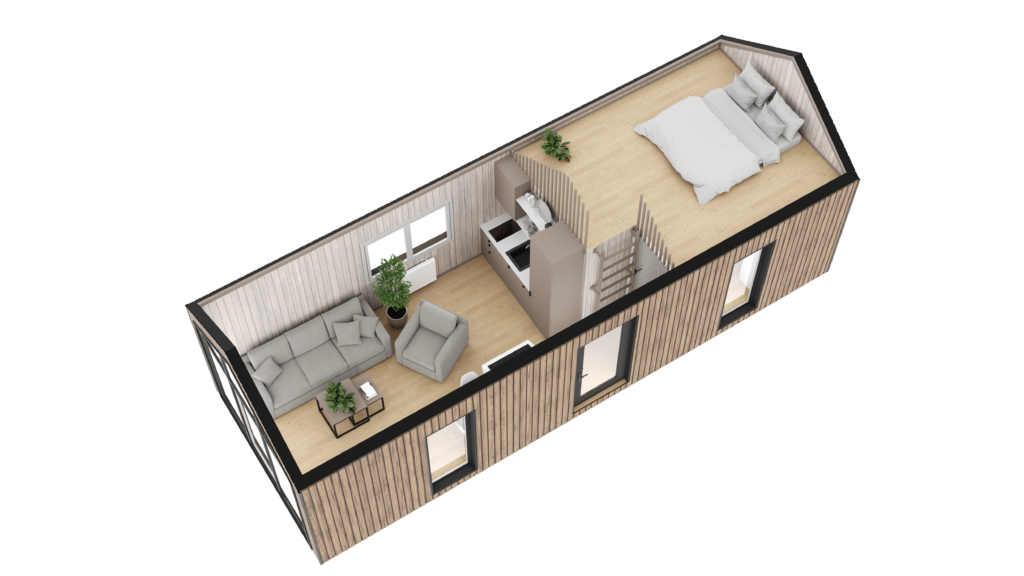 ZEN to domek o powierzchni użytkowej 29,58 m2, zaprojektowany specjalnie dla ośrodków wypoczynkowych oraz glampingów. Stanowi idealne rozwiązanie dla tych, którzy pragną połączyć bliskość natury z wygodą i stylem. Nasz domek jest doskonale wyposażony i oferuje komfortowy pobyt na łonie przyrody.